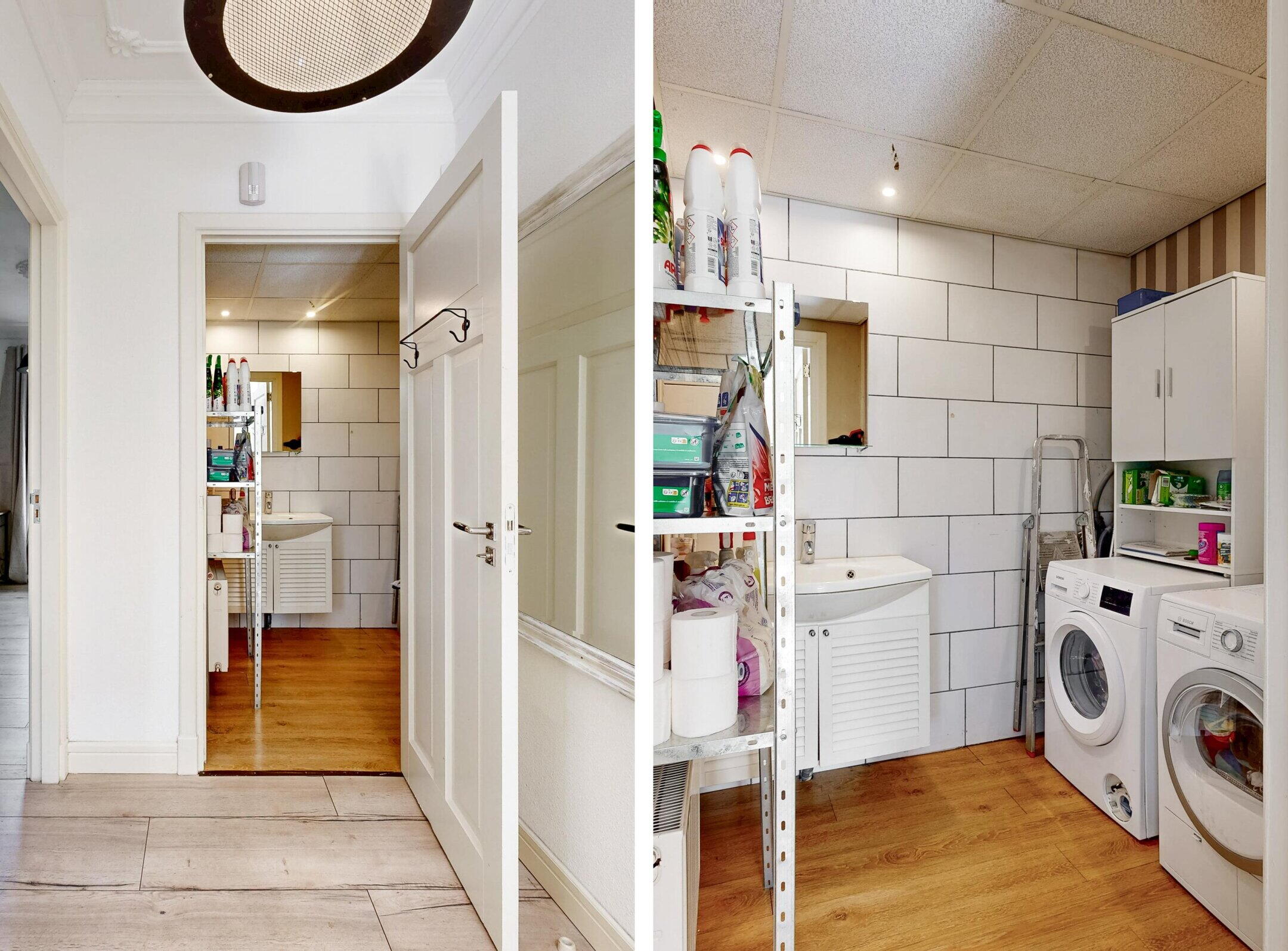 De wasruimte (ca. 4 m2) die via de overloop direct bereikbaar is, is naast wasmachine aansluitingen, ook nog voorzien van een eigen wasbak, ideaal om even iets uit te wassen.