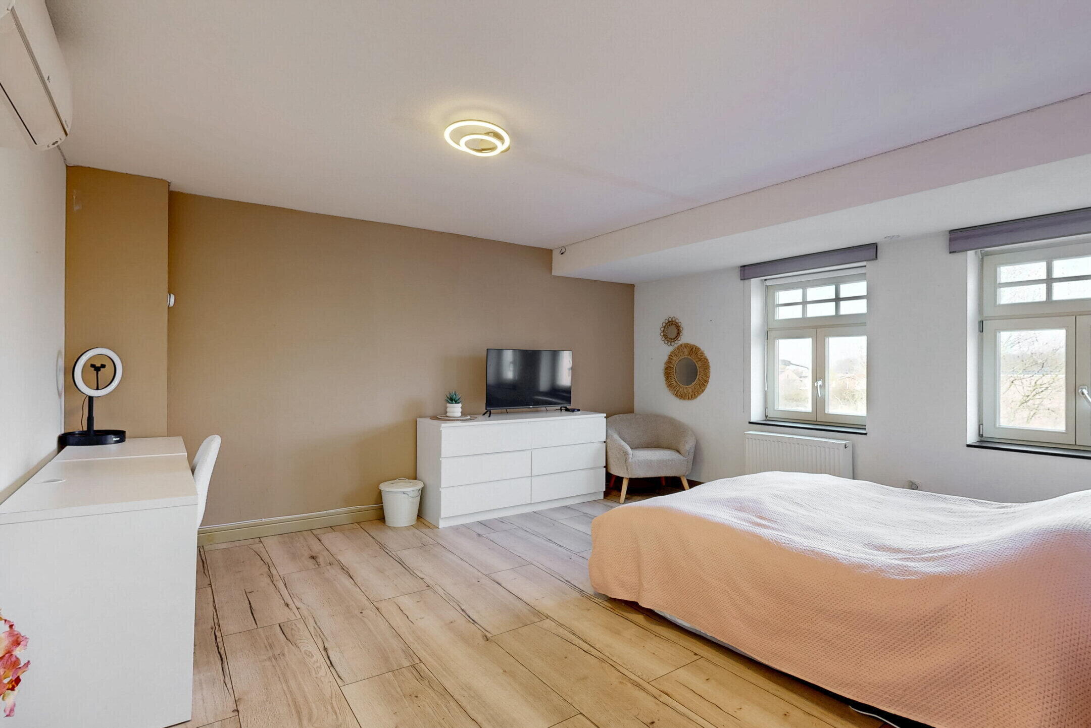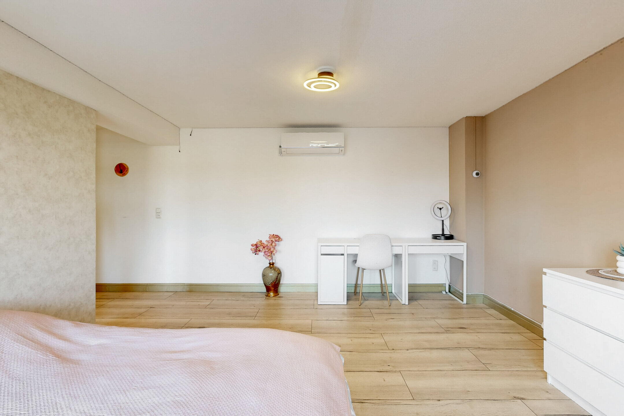 Overloop met toegang tot toiletruimte, wasruimte en twee slaapkamers. Het toilet is voorzien van een zwevend closet en fonteintje. De slaapkamer aan de achterzijde is ca. 19 m2 en voorzien van een eigen airco en een stijlvolle inbouwkast. De slaapkamer aan de voorzijde is maar liefst 27 m2 en heeft net als de andere slaapkamer een inbouwkast en laminaatvloer. Deze slaapkamer heeft een plafondhoogte van 2.70 m wat het nog ruimtelijker maakt en is voorzien van een en suite badkamer. De badkamer (ca. 3,5 m2) heeft een vaste wastafel, douchecabine en een 2e toilet.