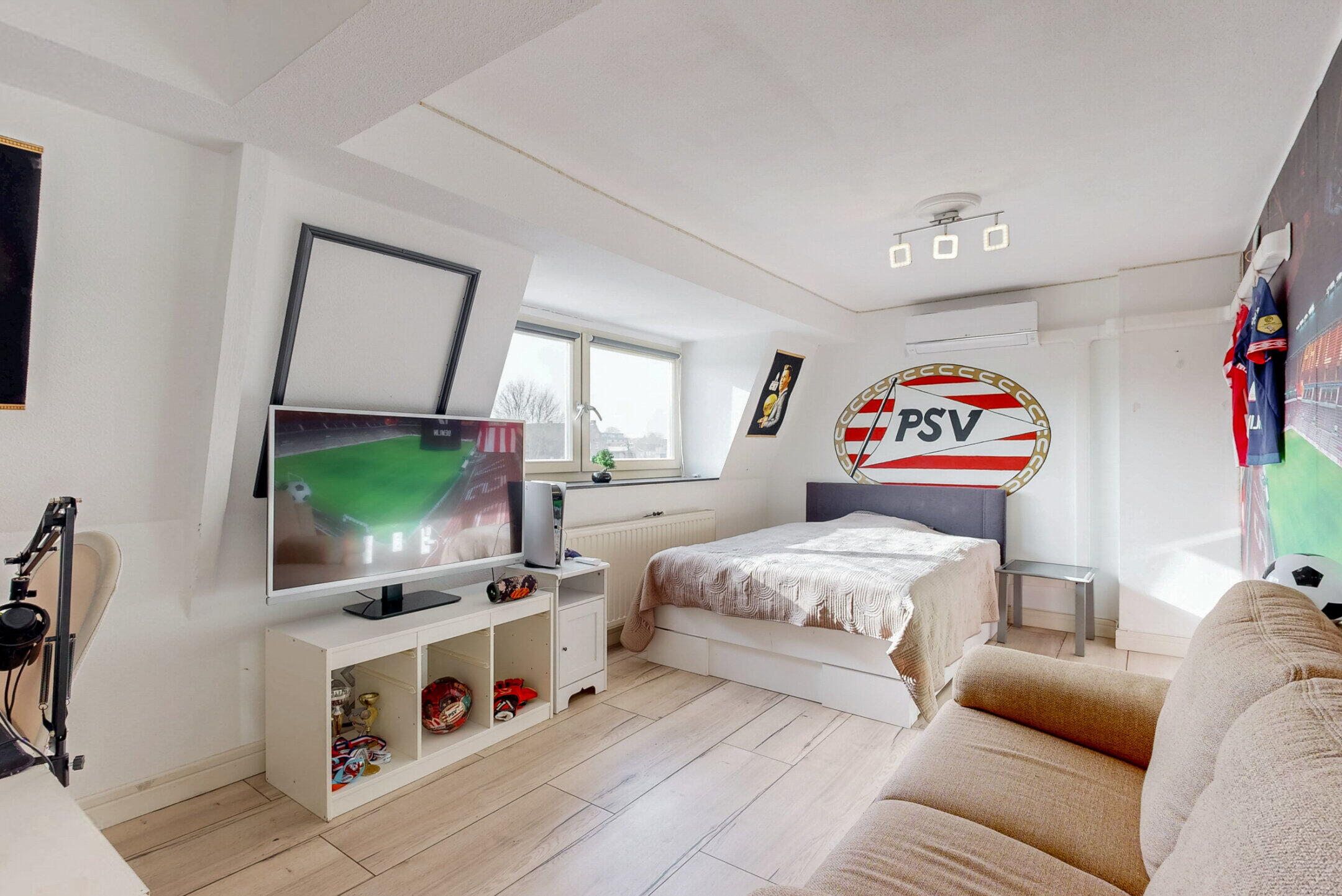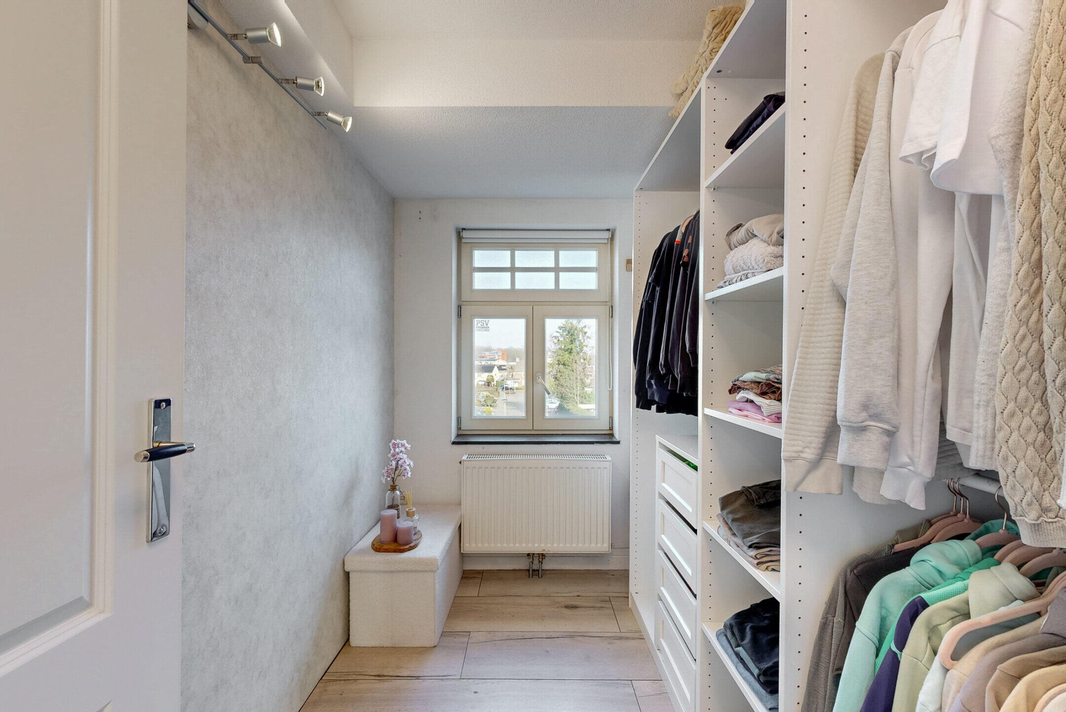 Overloop met vlizotrap naar vliering en toegang tot twee slaapkamers en een badkamer. Beide slaapkamers zijn net als de overloop/1e verdieping voorzien van een laminaatvloer en beiden hebben een eigen airconditioning. De slaapkamer aan de achterzijde is ca. 17 m2 en krijgt lekker veel daglicht dankzij de dakkapel met dubbele ramen. De slaapkamer aan de voorzijde is zeer ruim met 21 m2 en heeft een heuse inloopkast/kamer van ca. 6 m2.
