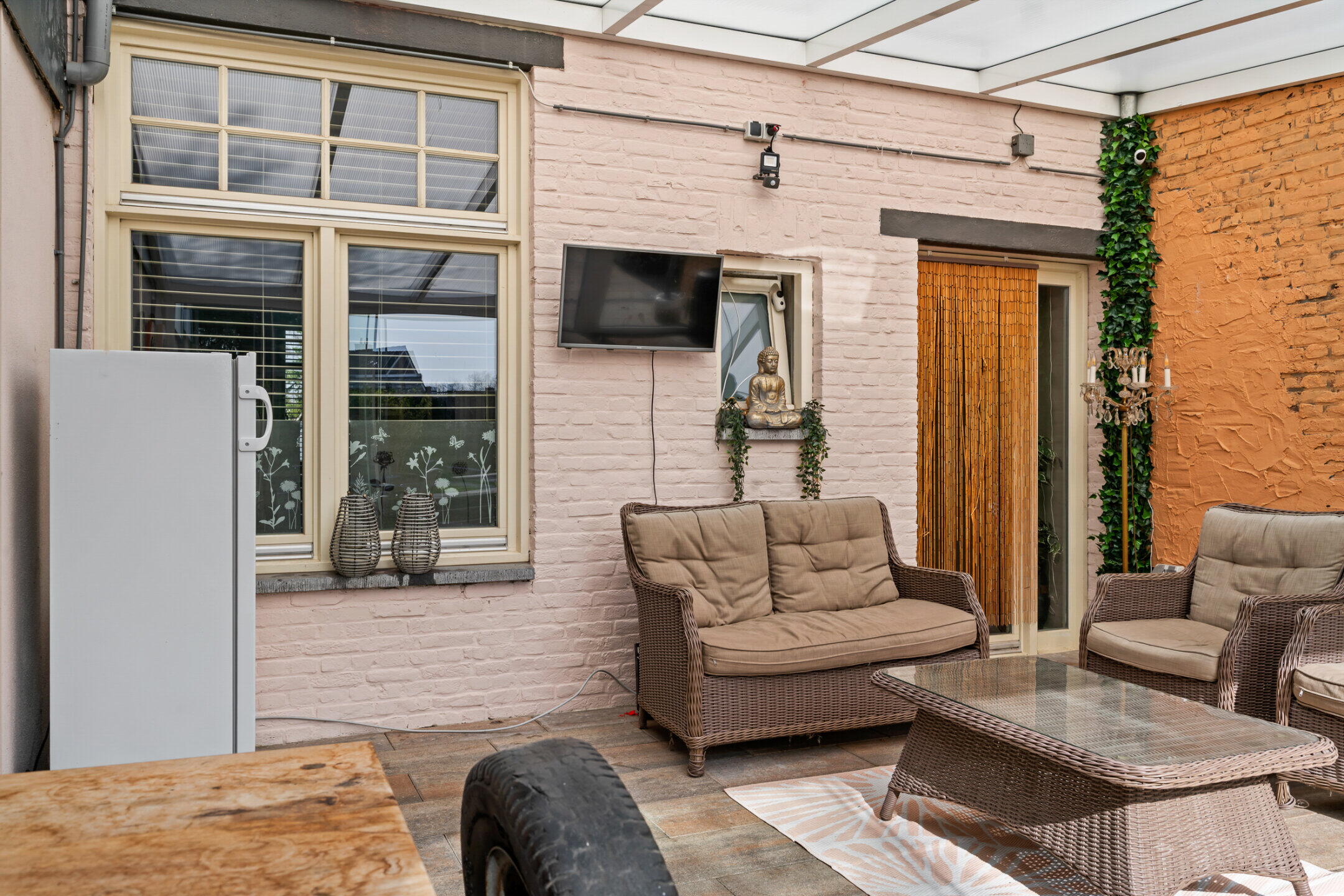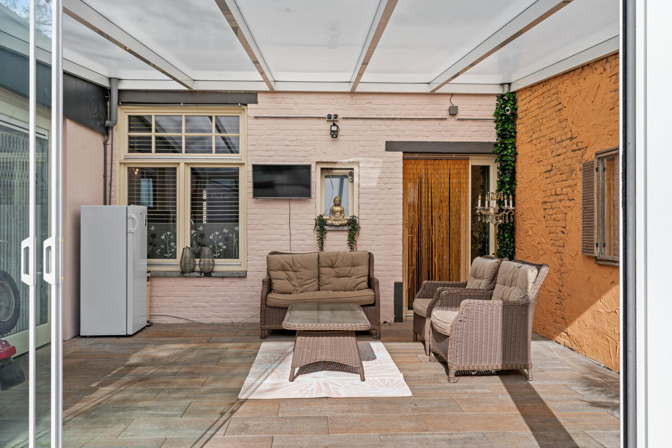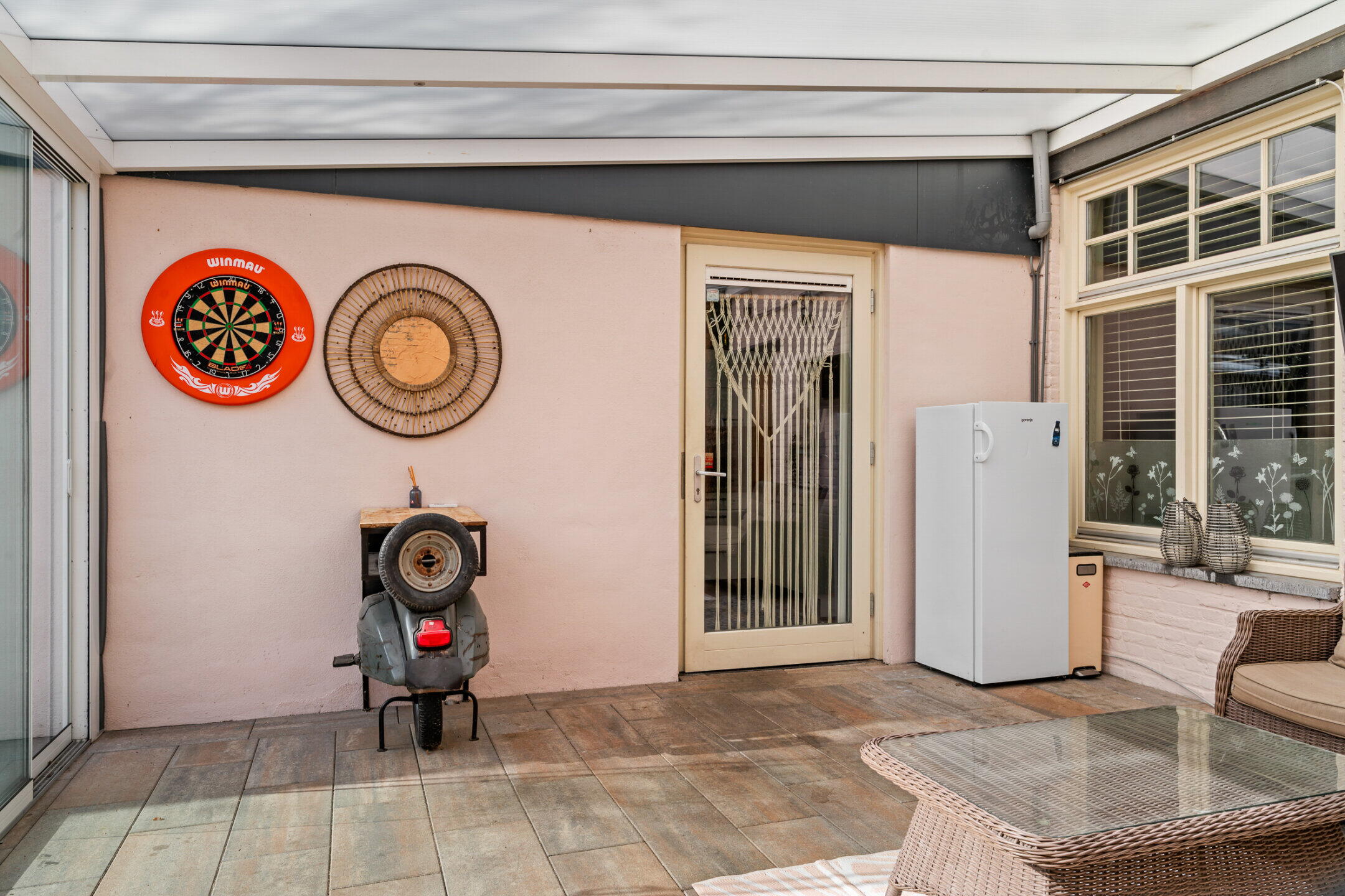 Direct aan de achterzijde van de woning is een mooie serre (2021/2022) geplaatst van bijna 26 m2, dus je kunt zo'n beetje het hele jaar beschut buiten zitten. De serre is zowel via de gang als de keuken bereikbaar en uiteraard via de achter tuin.